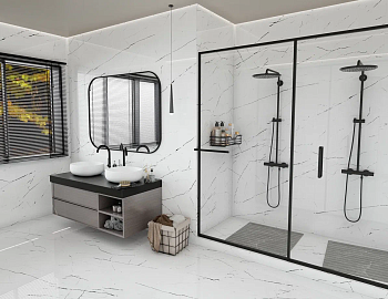 Чистота и сияние мрамора в коллекции Onyx Bianco создают ощущение легкости и простора, идеально подчеркивая современный стиль.